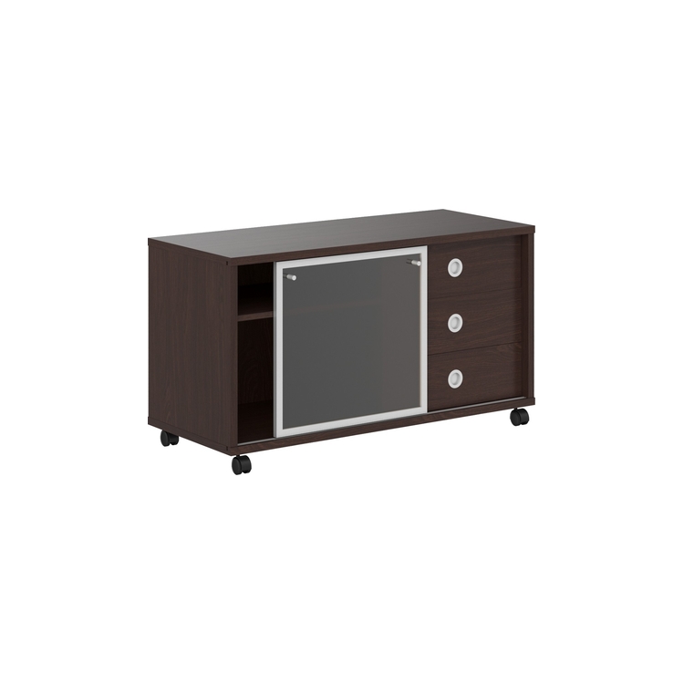 Тумба мобильная комплектуется стеклянной слайд-дверью в алюминиевой рамке, стекло тонированное пленкой, бронза.