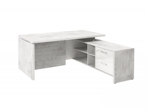 Столешница, бок стола и бок тумбы выполнены из ЛДСП толщиной 38 мм. Цвет - "Хромикс белый". Кромка 2 мм.